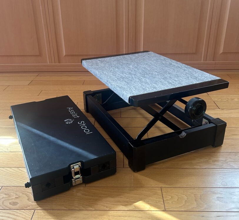 生徒さんのほとんどの方がベンチイスをお持ちです。座面が柔らかく、長時間の練習でも疲れにくいですが、ハンドルを回して高さ調節をするため時間がかかります。
