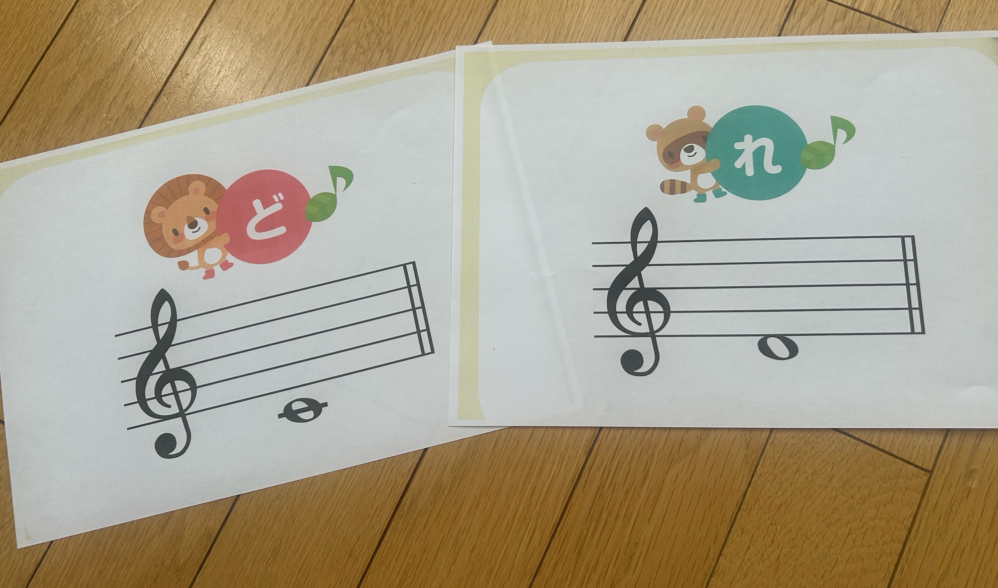 楽譜が読めるようになりたい!というNちゃんの願いがあるので、ドとレの2つだけ音を習って楽譜上の音を順番に指差して歌うことができたらいいなと考え、30分の体験レッスンメニューを組みました。