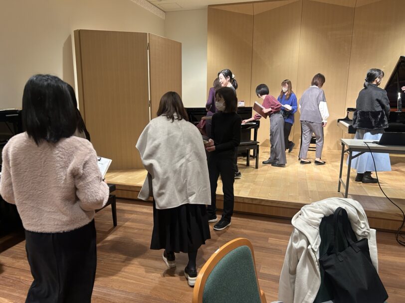 後半は、実際にグランドピアノ、アップライトピアノ、電子ピアノに触れる機会や参加者同士の座談会