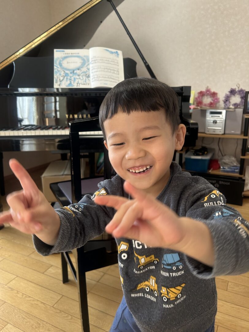 3歳になる頃からひと月に2回ほどのペースでお母さまと一緒にゆうまいピアノ教室(千歳市)に来ていたHくん。